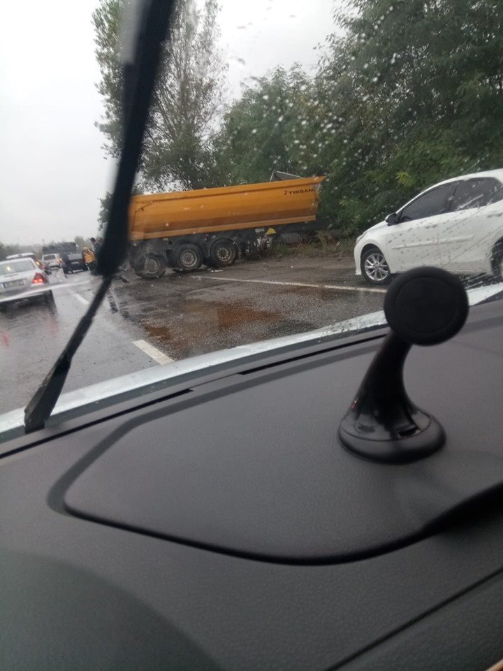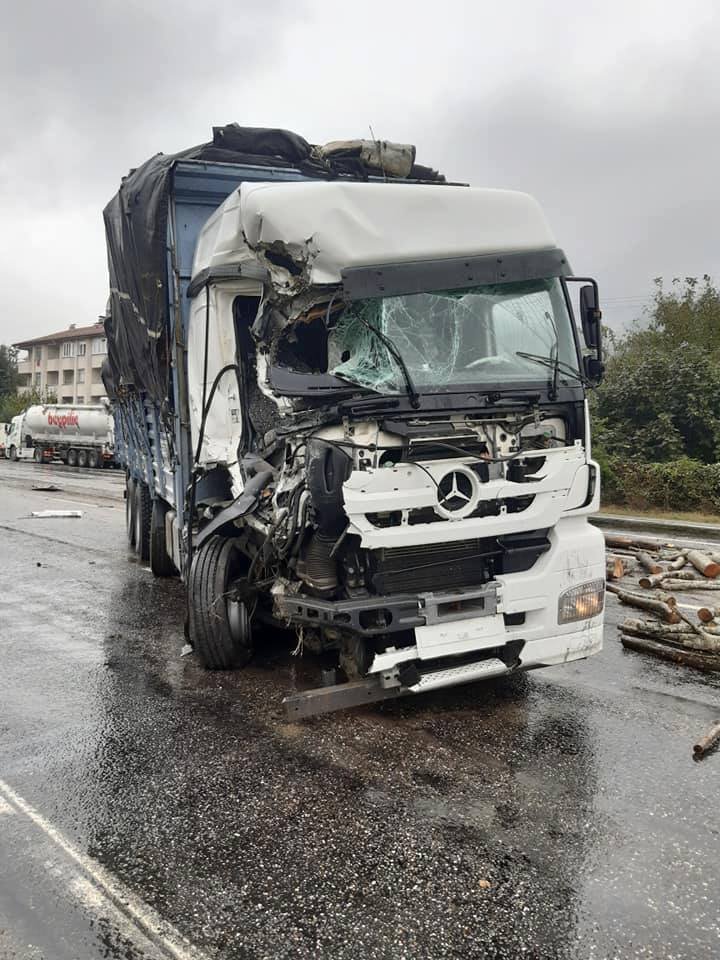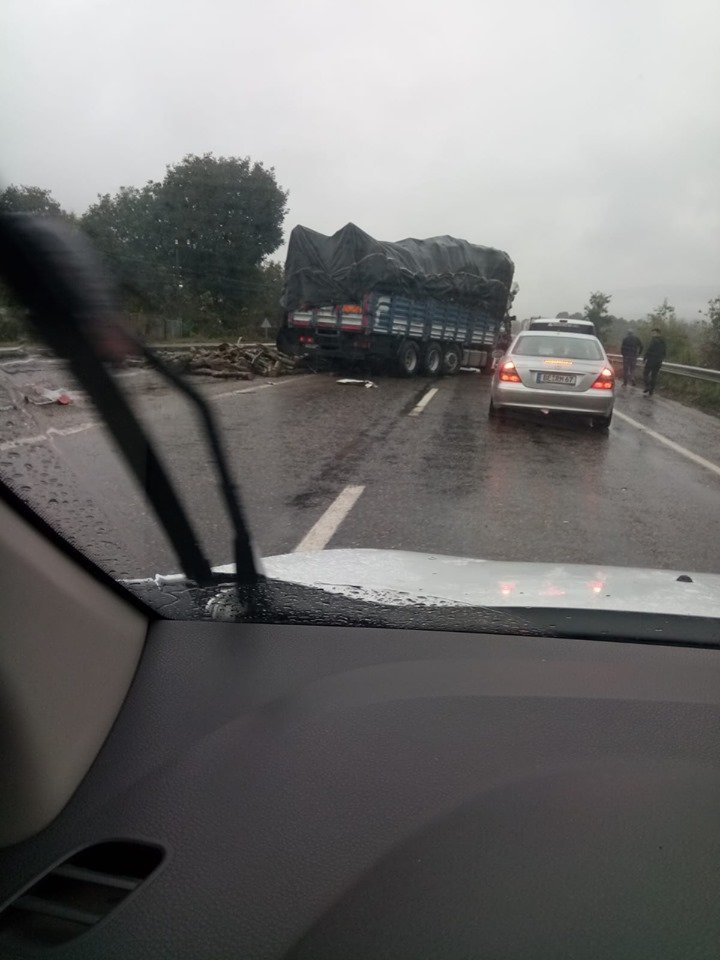 Alınan bilgiye göre havanın aşırı sağanak ve yolun kaygan olması nedeniyle seyir halinde giden 2 TIR zincirleme kaza yaptı. TIR’lardan bir tanesi yoldan çıkarak kanala uçtu. Diğer TIR ise yolda kaldı. TIR’lardan bir tanesine olan tomruk ve odunlar ise yola saçıldı.