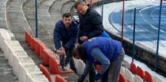 Zonguldak stadının kale arkası tribünlerine koltuk yerleştirildi
