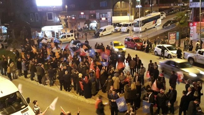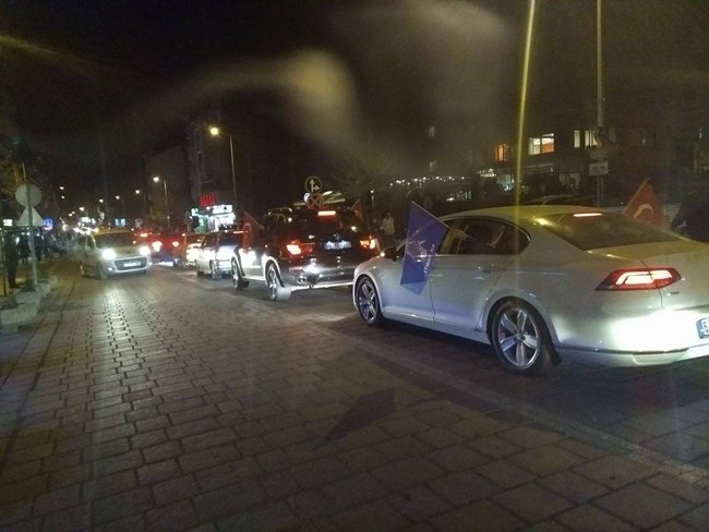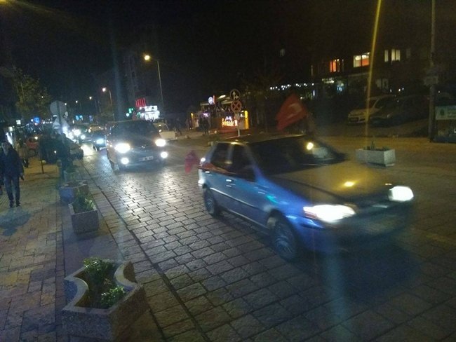 Bazı sürücüler ise ellerindeki Türk bayrakları ile korna çalarak Madenci Anıtı’ndaki gösterilere destek verdiler. Kutlamalar çerçevesinde Çaycuma ilçesinde de kutlamalar konvoy eşliğinde yapıldı. Araçlarıyla birlikte Nihat Kantarcı Caddesinde gezen partililer, araçlarından Ak Parti ve Türk bayrağı sallayarak zaferi kutladılar. (Haber Merkezi)