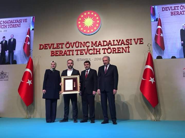 İstanbul’da düzenlenen Devlet Övünç Madalyası ve Beratı Tevcih Töreninde Zonguldaklı 15 Temmuz Gazisi ve Zonguldak Dernekler Federasyonu Genel Başkan Yardımcısı ve Sosyal İşlerden Sorumlu Başkan Sinan Avcı’ya Aile ve Sosyal Politikalar Bakanı Fatma Betül Sayankaya, İstanbul Valisi Vasıp Şahin ve Büyükşehir Belediye Başkanı Mevlüt Uysal tarafından ‘Devlet Övünç Madalyası’ takdim edildi.