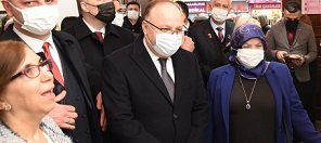 Serginin açılışını gerçekleştiren Vali Mustafa Tutulmaz ve beraberindekiler, daha sonra eserleri inceledi.