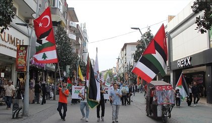 Yürüyüş boyunca “Her yer Gazze her yer direniş”, “Zonguldak’tan Gazze’ye direnişe bin selam”, “Nehirden denize özgür Filistin” sloganları atıldı.