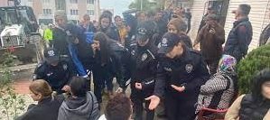 Zonguldak’ta kentsel dönüşüm kapsamında bina yıkımı için yapılacak yola, evlerine zarar vereceği düşüncesiyle karşı çıkarak oturma eylemi başlatan mahalleliyi polis ikna etti.