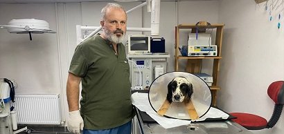 Köpeğinin yaralandığını gören Terzi, hayvanı Zonguldak kent merkezindeki özel bir veteriner kliniğine götürdü.